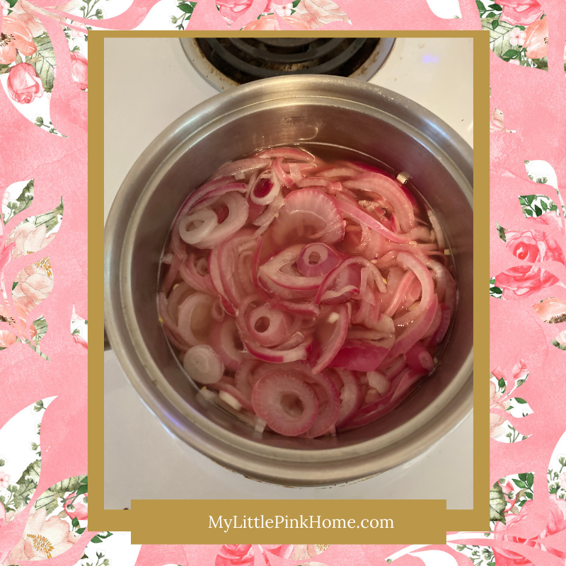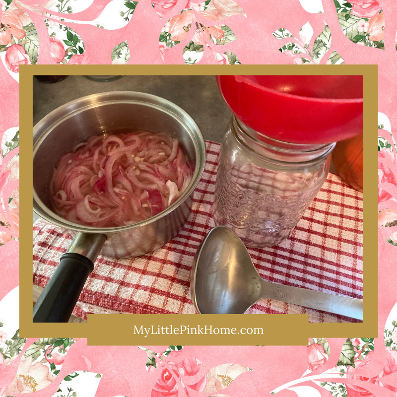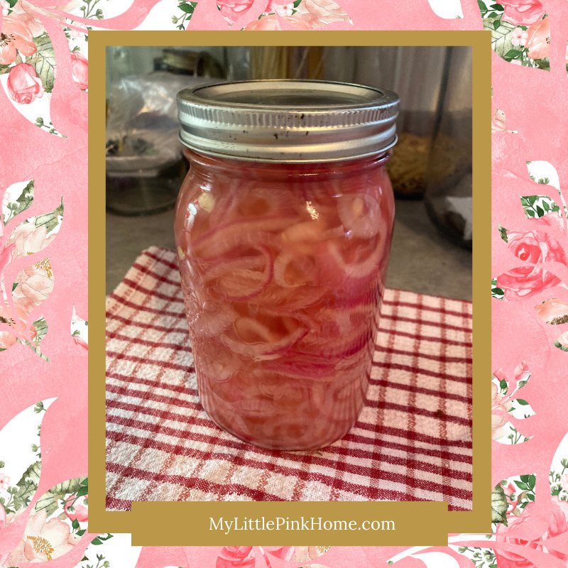 I love having a selection of condiments in my refrigerator to add depth to my meals. One of the easiest things that you can prepare is a simple bottle of pickled red onions. I use them on salads, on top of chili or curry or in sandwiches. My grandkids devour them.